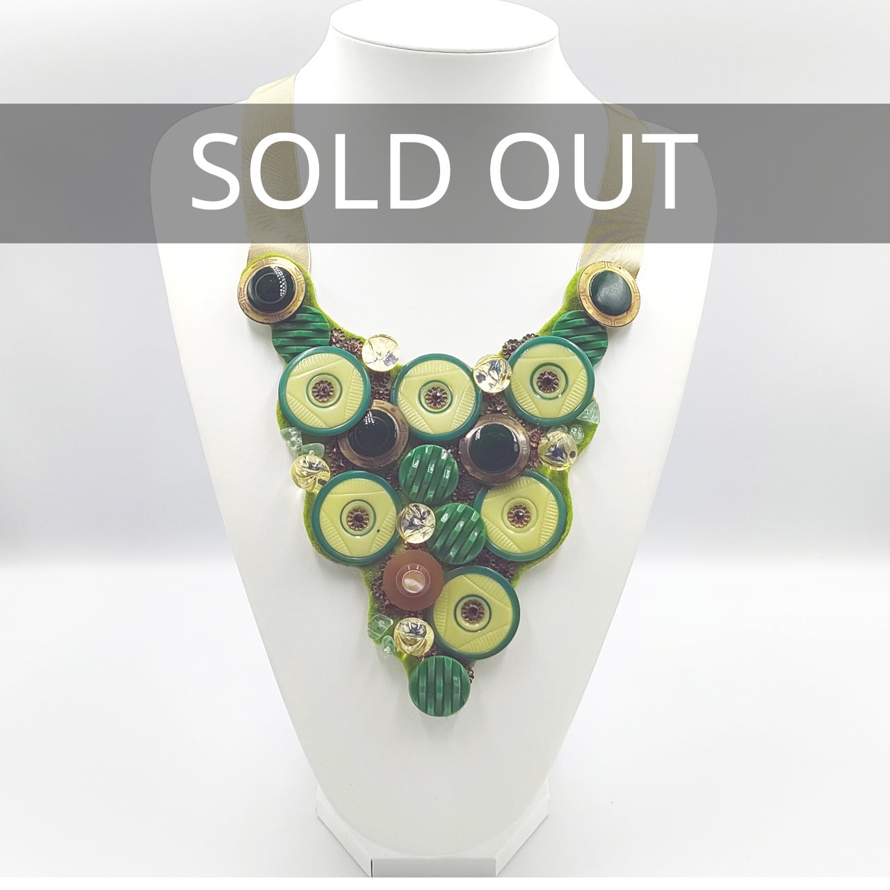ヴィンテージもののボタンを使用した、1つとして同じものは存在しないネックレスです。